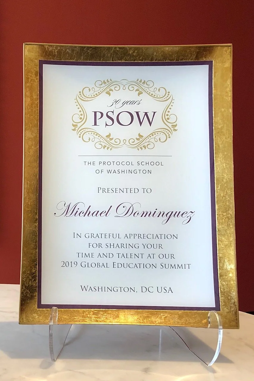 These decoupage on glass awards are handcrafted and use a gold leaf border. This impressive plate is 12”X16” and can be created in different sizes. This technique allows us to make the whole award about the organization and recipient, unlike many awards that just leave a small area on a base for the description.